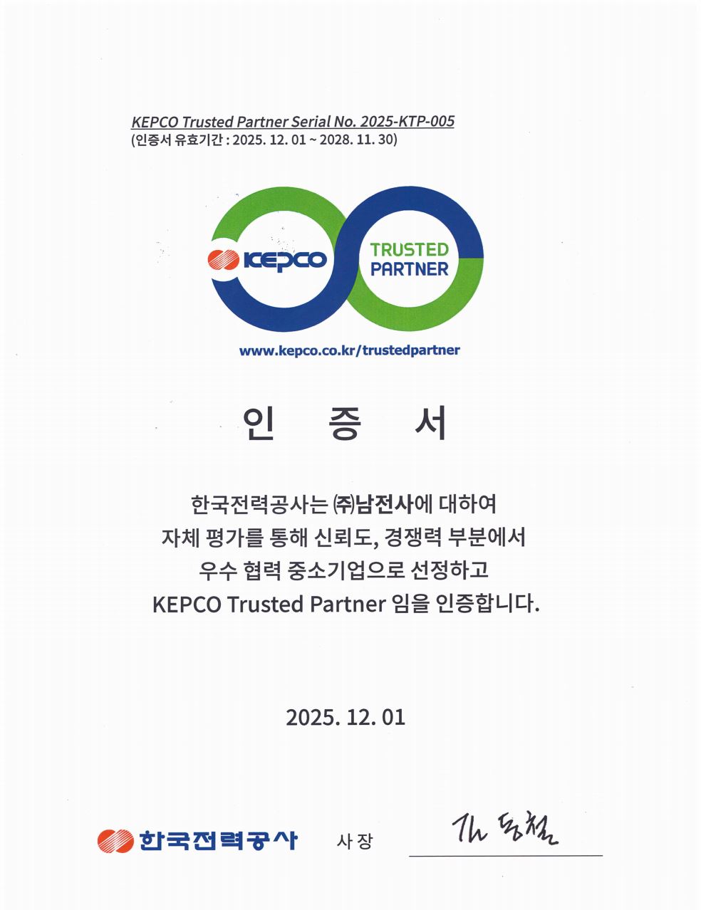 KEPCO Trusted Partner 인증